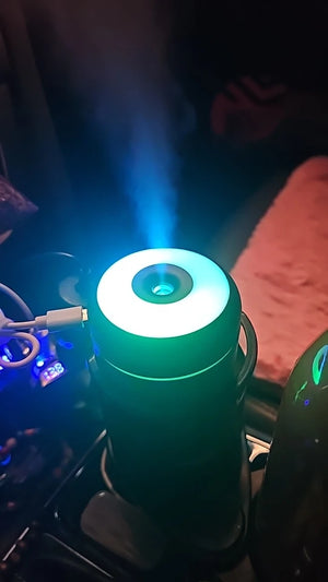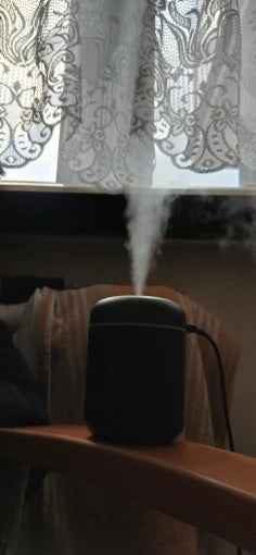 Compact ultrasonic humidifier delivers quiet mist and aromatherapy to relieve congestion, improve sleep, and boost focus in small rooms or vehicles.